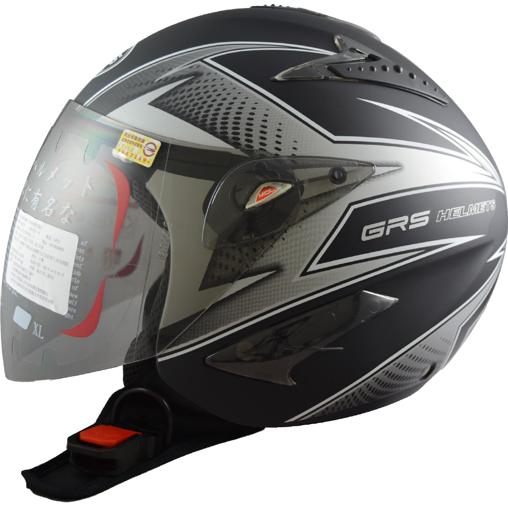 4個透氣孔PC蓋,避免沙塵與蚊蟲進入,有效排除熱氣與溼氣。鏡片為高強度PC材質,耐用度高。三件式可拆洗內襯設計,拆裝方便快速,提升內襯衛生與使用品質。鏡片可抗紫外線,保護眼睛與皮膚。帽頂配置3通風孔,不悶熱。專利級插釦式釦具,通過認證,安全性高與耐用度久。