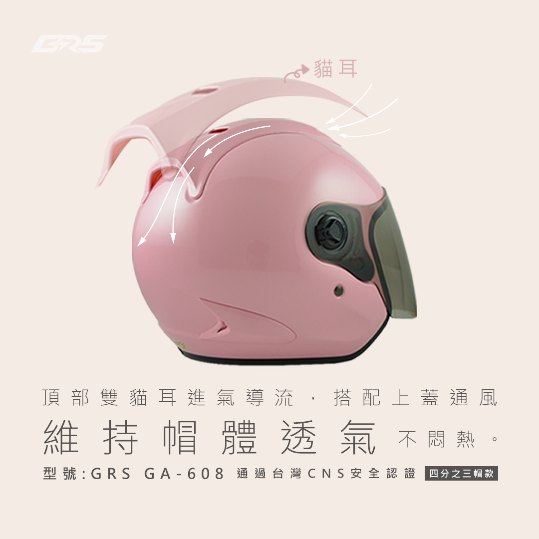 3. 安全帽上方、後面有通風孔設計,有效排除熱氣與溼氣。