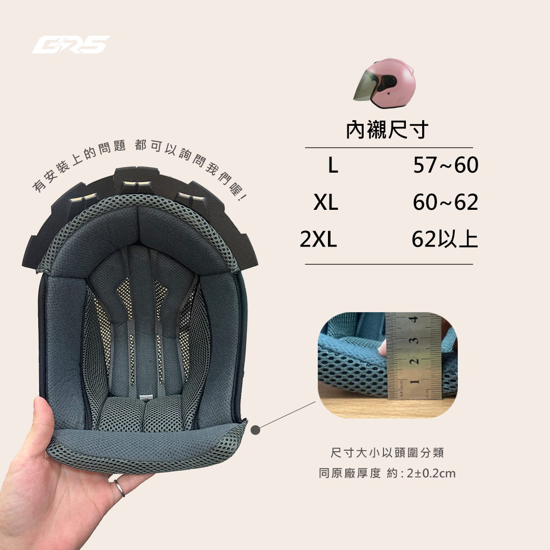 購買安全帽時,請先測量頭圍尺寸大小,以免購買之後長時間配戴安全帽而產生頭痛現像,過大或太小的尺寸都不合適,尺寸均以公分數標記。
