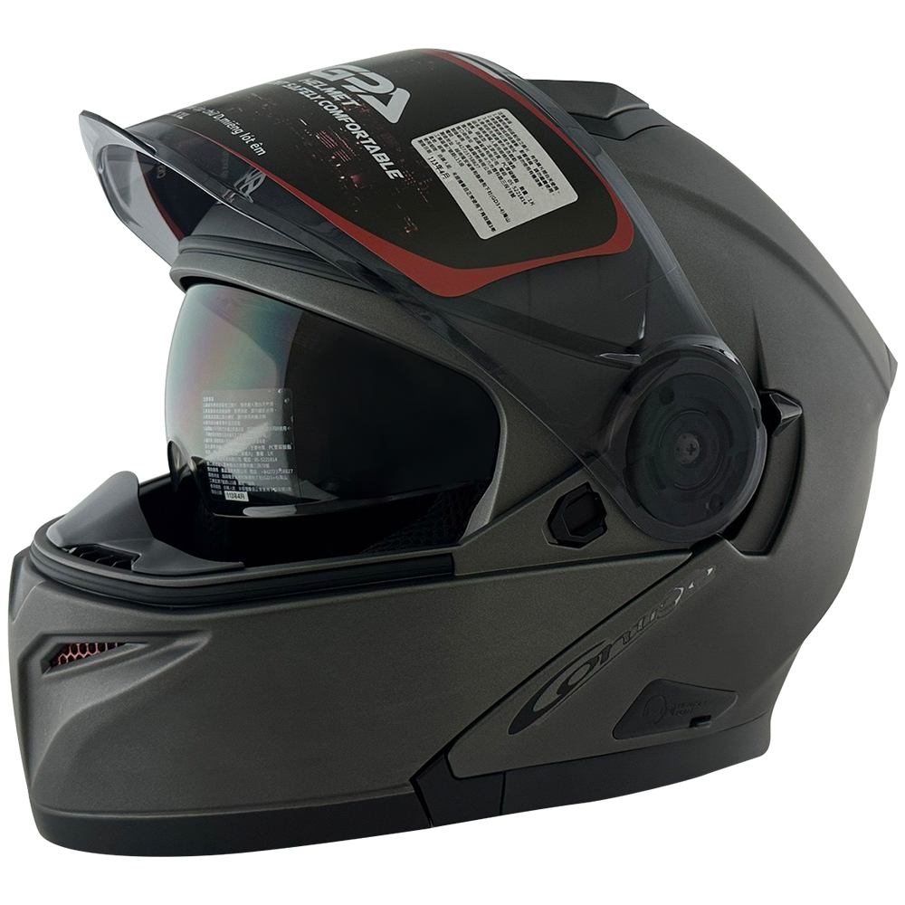 4.雙鏡片設計,戴上帽的左側,撥動開關,向上撥動到底可將內墨鏡片拉出,向下即可收藏起來。