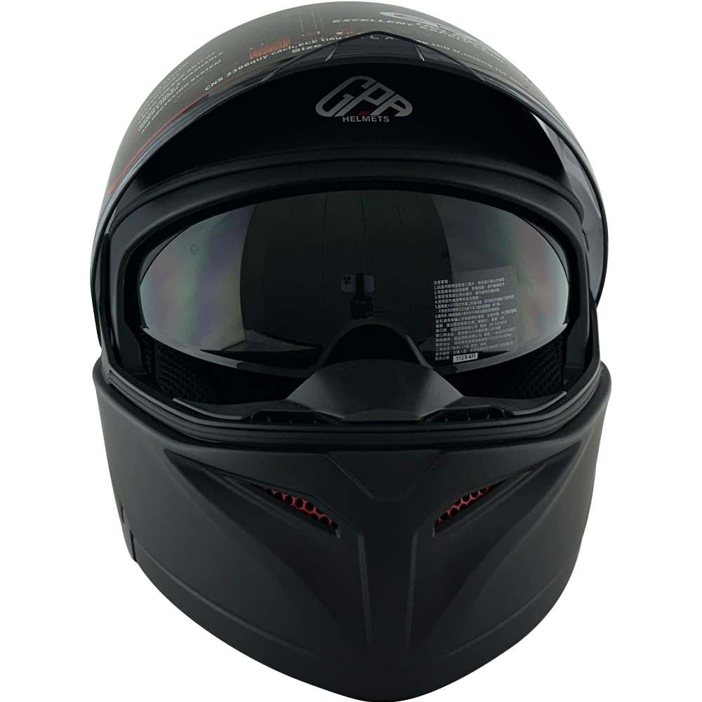 1.安全帽下巴位置處,有兩道進氣通風口,內部含有開關,可開啟/關閉,進而吹向鏡片達到除霧效。